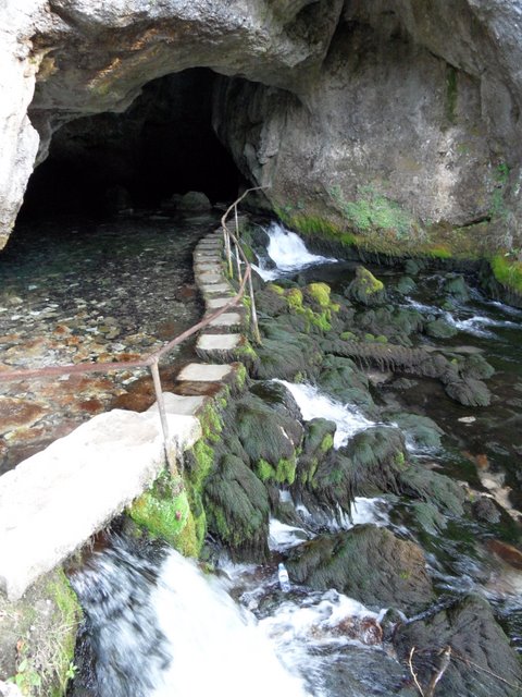 Sure enough, we'd arrived just at the beginning of a cycle; within no more than 5 minutes the source was belting out water at a rate of knots and the stepping stones were part of a waterfall.