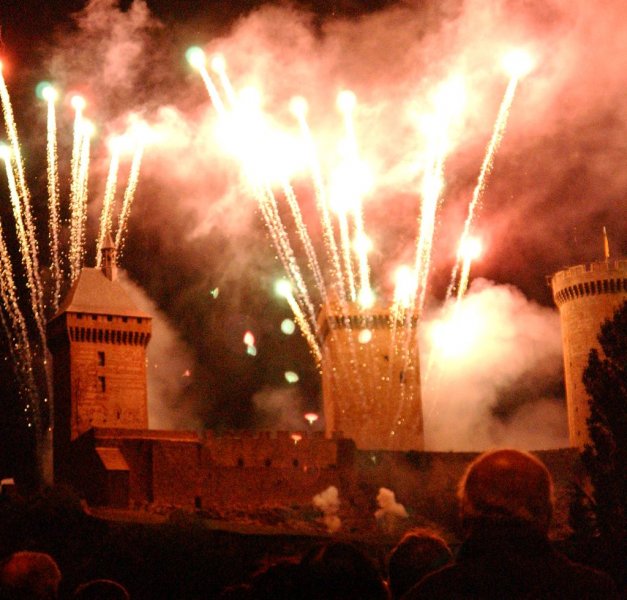 We finished the evening in Foix, where it was the first day of the fêtes locales. A huge funfair had taken over the town centre, and it felt as though the whole of Ariége had arrived to watch the firework display. At 10.30 sharp the streetlights went out, the dodgems drifted to a halt, and everybody gathered below the chateau to wait and watch and ooh and aah. It was magnificent.