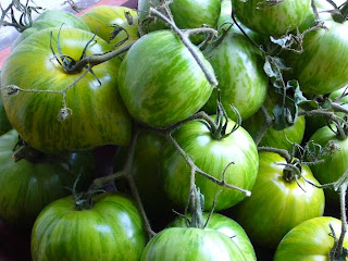 Wouldn't you just know it? After yesterday's weather rant, today the sun shone in a cloudless sky, unpredicted by Metéo France. I, however, was indoors on glut management duties: Something Had To Be Done with the five kilos of tomatoes that had been sitting in their bowls looking accusing for several days. These are Agora tomatoes, from just two plants; I reckon we've eaten a good three kilos already, and there's still, assuming the blight doesn't get them, a good three kilos to ripen: that makes around 11 kilos of fruit from two 60 centime plantlets. Bargain. This is (and I'm frantically touching every wooden object I can find while crossing all my fingers and toes - not an elegant sight) the first year we've not had late blight; we've harvested well from our two cherry tomato plants too, though quite not so well, sadly, from the Cornue des Andes that were so productive last year.