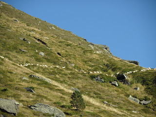 The other breed of dog that does this work is the Berger des Pyrénées. Our own dog is (mostly) one of these, though we've no idea whether he comes from a working family as he was originally taken in having been abandoned. However - and I'm aware that this may sound far fetched to some - when we were up in those high mountain pastures it was as if something was calling to him from a collective unconscious ... the way he looked, and listened, and thought ... a particular sort of alertness, a sort of intelligence, that was new. It was as if he was thinking "Hang on a minute ... I know something about this ... I've been here, before ...".