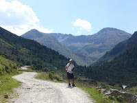 For all that, it's a spectacular area, and once you leave the N20 behind is as silent as you could wish for. The Plateau de Beille is a high altitude plateau, better known for being the Pyrénées' most important cross country skiing area and a frequent stage finish for the Tour de France. Now I'm not a skier, and haven't been one since a memorable school skiing trip during which I entered into the kind of relationship with a T-bar that's really best not described. But the walking is great. You can drive up to the ski station, which means it's one of the few walking areas where you can start walking at an altitude of 1800 metres. We're Slow Walkers, not peak baggers; we’re not interested in how fast we can cover a path, how much height we can gain or how many kilometres we can walk, nor are we up for scary scrambles, precarious footholds or anything that needs crampons. Slow Walking is about taking time to be in and contemplate our surroundings with all our senses; to stand and stare just as often as we want to; and to enjoy the simplicity of walking without the need for challenging goals. So the Plateau is our kind of high altitude walking: no ropes, no vertigo, no scree, but still enough ascent and descent to feel that you've had a decent workout, plus 360 degree views of lots of the big peaks in France, Spain and Andorra. There was one point where we could see both Canigou and Mont Valier, which if you know your Pyrénéan geography you'll realise is quite remarkable.