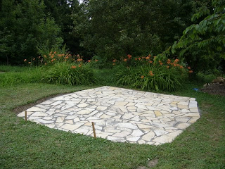 So in the absence of good company and exciting events like walls coming down there's nothing for it but to get on with the grafting. And this is where, much as I hate everybody else's smug, look-what-I've-done-aren't-I-clever blogs, I'm going to inflict a bit of one on you now. Just a tiny bit, I promise. If this offends you, look away now. But I've just done something I've never done before, and it's worked. I've laid a terrace, out of random stone.
