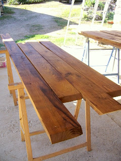 When we arrived at Grillou two years ago, like most house buyers here we inherited a lot of Stuff, in our case mostly wood of one sort or another (oh, and a pony). Mounds of it, here, there and everywhere: wood for burning, wood for making steps and structures in the garden, old beams, old oak floorboards stashed away in the porcherie, bits of cut down trees, slices of oak tree 6 centimetres thick ... and then there was the chestnut.