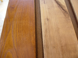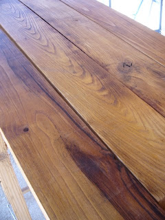 Do you remember those magic colouring books that were all the rage hundreds of years ago, when I was nobbut a kid? You 'painted' the page with water, and a picture in different colours appeared, by magic. Well, oiling chestnut that's been really well weathered and then sanded is a bit like that; as soon as you wipe the oil onto the wood, the most amazing grain patterns appear, as if from nowhere. And it's the most beautiful, rich wood, too ...