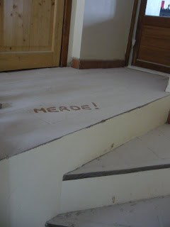 Those are, believe it or not, red terracotta tiles. Drastic measures were necessary to clean the 50 square metre area: