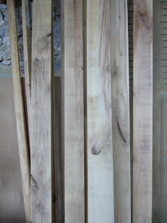 Meanwhile, out in the barn, John's been cutting and planing chestnut planks ready to make a balustrade for the mezzanine floor in La P'tite Maison's bedroom. I've spent more than a year on this particular quest (yes, I am persistent, yes I am hard to please, and yes I am a Libran). I've looked at kits - boring. I've thought about wrought iron. Too heavy. I've had quotes for this and that. Two thousand euros? For four metres? Er - maybe not. But as ever the answer was not quite blowing in the wind, but staring us in the face in the barn in the shape of the remainder of our chestnut planks. I had one of those aha! moments, and then we went from idea to design to measurement to action in an hour and a half.