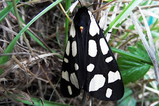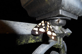 Our latest visitor to the garden arrived this week in the shape of an arctia villica: a Cream Spot Tiger Moth. I first spied him (her?) on the night of the eclipse, sitting placidly on top of the terrace lights watching all the other moths going bananas as usual. I swear s/he had a superior look in his/her eye ...