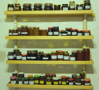 Take a trip to any agricultural co-op or even to the supermarket at this time of year and you'll be presented with a vast array of preserving jars and pans, thermometers, automatic sterilisers and every other possible accoutrement; late summer is also the time to fill the storehouse (tell me about it ... having just managed to finish conserving the eighteen kilos of green beans that my mere three rows of plants produced this year we're now knee deep in aubergines, peppers, tomatoes, quinces, squash, melon, grapes, walnuts, crab apples, figs .....). In this land of duck, any self-respecting paysanne Ariégeoise over 50 will as I speak be filling her larder with jars of confits, soups, stews and beans cooked in duck fat, and foie gras, not to mention - judging by the extraordinary number of tomato plants that grow in the average potager round here - hundreds of pots of tomatoes conserved in every which way.