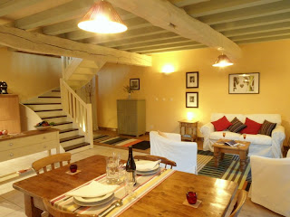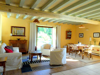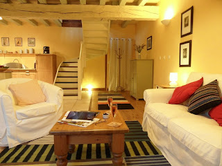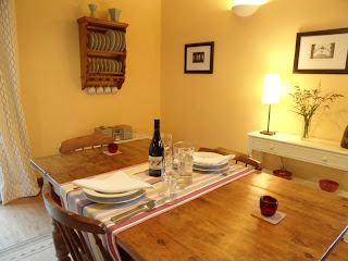 There's a dining area which seats four people in comfort; opposite is a sitting area with a squashy sofa and two armchairs plus an antique dresser full of table linen and other essentials