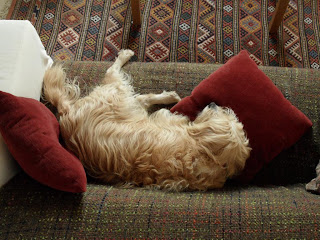 It's true - dog choose their owners. It looks like he is truly at home now not at all stressed & I'm sure Noodle will get him to play soon. Mortimer would just love to have another dog to stay on a permanent basis, but I'm still resisting...........